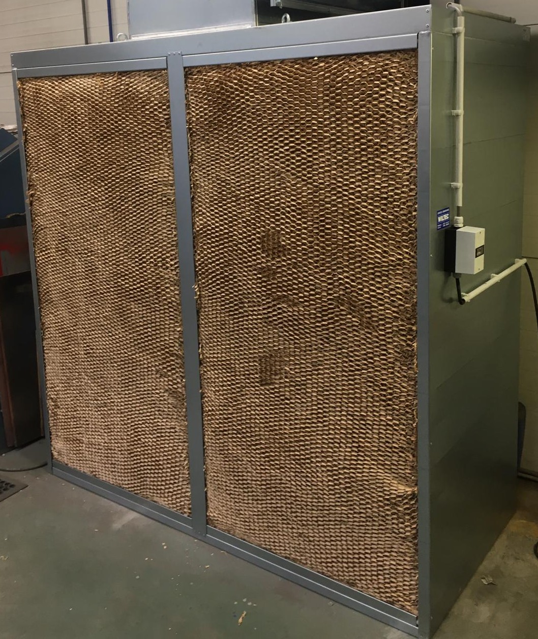 De afzuigventilator is geluidsarm uitgevoerd en geplaatst in een unieke luchtverdeelunit, wat zorgt voor een efficiënte en stille werking – ideaal voor langdurig gebruik in een productieomgeving.